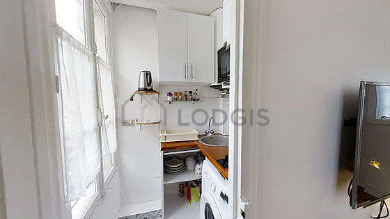 Este apartamento tem uma magnífico cozinha com azuleijo no piso e todo o equipamento pela sua vida quotidiana : fogaõ, frigorífico, microondas, freezer, chaleira, guarda-roupa, armário, loiça, soup plates, dessert plates, plates, bowl, casserole dish, cooking knives, lid, cutlery, wooden spoon, hot plate, drying up stand, ladle, mugs, sieve, chopping board, work surface, stove, bin, curtains, placemat, tea cups, ventilator, water glass.