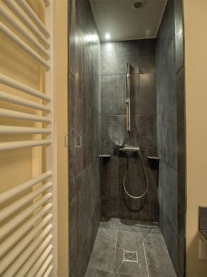 Este apartamento é equipado de uma casa de banho magnífico. Esta sala de água dispõe do necessário pelo seu bem estar na sua vida quotidiana : armário, ducheiro separado, sink, radiator secador de toalhas. Os WC são integrados na casa de banho.
