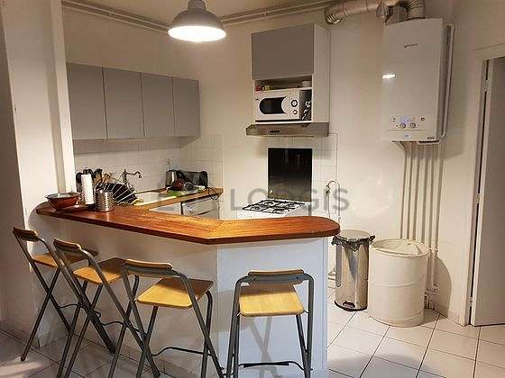Este apartamento tem uma magnífico cozinha com azuleijo no piso e todo o equipamento pela sua vida quotidiana : fogaõ, frigorífico, congelador, forno, microondas, exaustur, torradeira, loiça, banco, bar, bin.