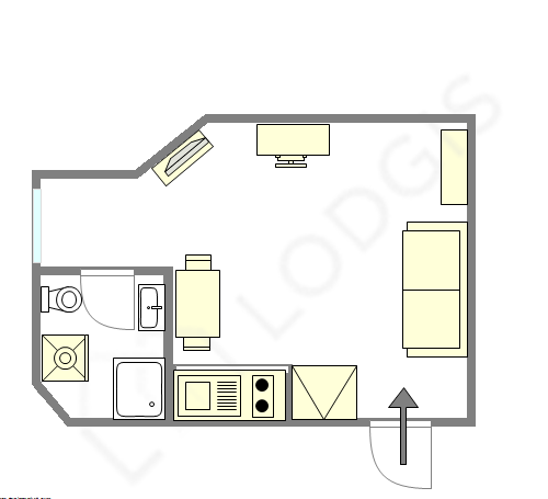 Este apartamento é composto de um charmoso salão com parqué no piso. Este salão very quiet mobiliado et equipado para uma agradável estância : televisaõ, lençois, colchas, sofá, mesa de jantar, secretária, roupeiro, prateleira, loiça, 1 cadeira(s)1 sofá-cama.