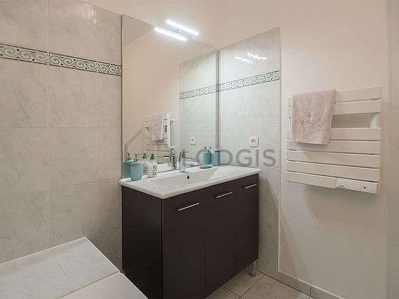 Este apartamento é equipado de uma casa de banho magnífico. Esta sala de água dispõe do necessário pelo seu bem estar na sua vida quotidiana : armário, banheira, sink, radiator secador de toalhas. Os WC são separados da casa de banho e situados em uma peça independente.