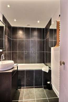 Este apartamento é equipado de uma casa de banho magnífico. Esta sala de água dispõe do necessário pelo seu bem estar na sua vida quotidiana : toalhas de banho, ducheiro separado, sink, mirror. Os WC são separados da casa de banho e situados em uma peça independente.