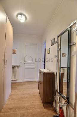 Este apartamento dispõe tambéma entrada equipada de roupeiro, guarda-roupa, comoda, mirror, coat stand.