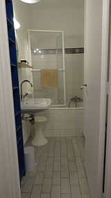 Este apartamento tem uma magnífico cozinha com azuleijo no piso e todo o equipamento pela sua vida quotidiana : fogaõ, frigorífico, forno, exaustur, chaleira, máquina de café, armário, loiça.