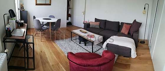 SalaõEste apartamento é composto de um magnífico salão com parqué no piso. Este salão very quiet mobiliado et equipado para uma agradável estância : televisaõ, sofá, 1 poltrona(s), mesa de jantar, mesinha, secretária, roupeiro, bufet, armário, 1 cadeira(s), banco.