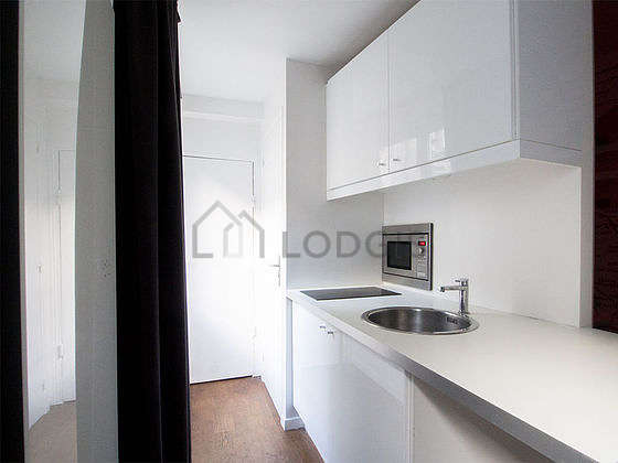 Este apartamento tem uma magnífico cozinha com parqué no piso e todo o equipamento pela sua vida quotidiana : fogaõ, frigorífico, microondas, torradeira, máquina de café, prateleira, armário, loiça, banco, bar.