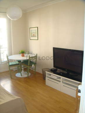 SalaõEste apartamento é composto de um charmoso salão com parqué no piso é janelas. Este salão very quiet mobiliado et equipado para uma agradável estância : televisaõ, lençois, colchas, sofá, mesa de jantar, prateleira, guarda-roupa, armário, loiça, 1 cadeira(s).