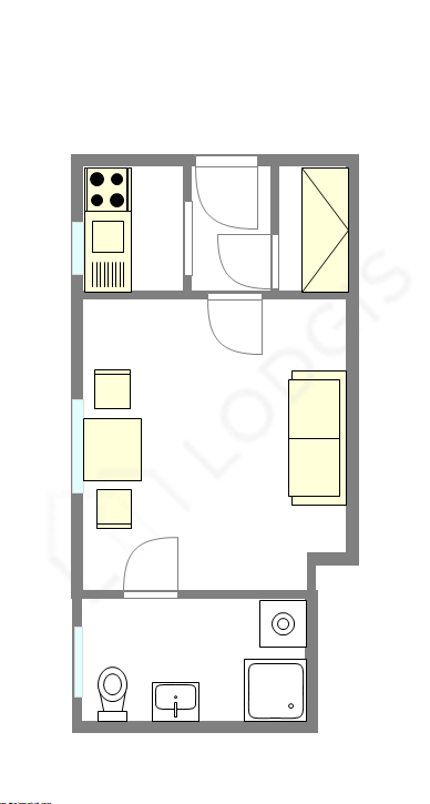Este apartamento é composto de um charmoso salão com parqué no piso é janelas. Este salão calmo mobiliado et equipado para uma agradável estância : televisaõ, lençois, colchas, sofá, mesa de jantar, 2 cadeira(s)1 sofá-cama.