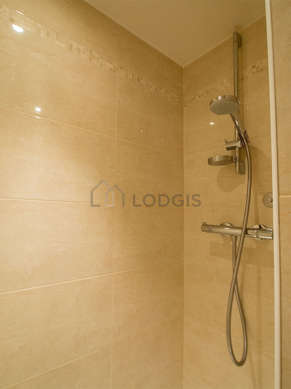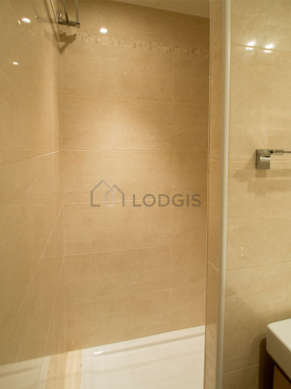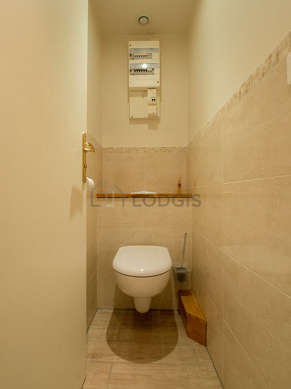 Este apartamento é equipado de uma casa de banho magnífico. Esta sala de água dispõe do necessário pelo seu bem estar na sua vida quotidiana : prateleira, armário, ducheiro separado, sink, mirror. Os WC são separados da casa de banho e situados em uma peça independente.