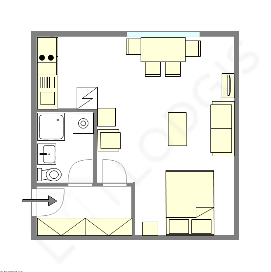 Este apartamento é composto de um charmoso salão com parqué no piso é janelas vitros duplos. Este salão calmo mobiliado et equipado para uma agradável estância : televisaõ, lençois, colchas, sofá, 1 poltrona(s), mesa de jantar, mesinha, comoda, 4 cadeira(s), mesinha de cabeceira1 cama.