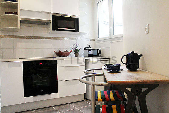 Este apartamento tem uma magnífico cozinha com azuleijo no piso e todo o equipamento pela sua vida quotidiana : fogaõ, frigorífico, forno, microondas, freezer, torradeira, máquina de café, mesa de jantar, prateleira, guarda-roupa, loiça, 1 cadeira(s), bin, radiator secador de toalhas.