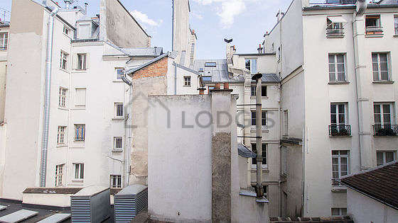 SalaõEste apartamento é composto de um charmoso salão com parqué no piso é janelas vitros duplos é vista sobre pátio. Este salão very quiet mobiliado et equipado para uma agradável estância : televisaõ, mesa de jantar, mesinha, prateleira, armário, viga, 2 cadeira(s)1 cama.