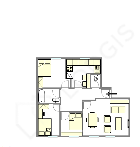 Este apartamento é equipado de uma casa de banho magnífico é muito clara. Esta sala de água dispõe do necessário pelo seu bem estar na sua vida quotidiana : armário, banheira, secador. Os WC são separados da casa de banho e situados em uma peça independente.