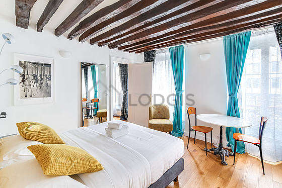 Com parqué no piso vista sobre rua, este quarto esplêndido oferece o equipamento necessário para descansar durante sua estância : lençois, colchas, 1 poltrona(s), guarda-roupa, armário, viga, 1 cadeira(s), mesinha de cabeceira1 cama.