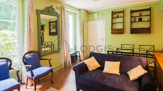Com parqué no piso é janelas é vista sobre jardim, este quarto esplêndido oferece o equipamento necessário para descansar durante sua estância : 1 poltrona(s), secretária, comoda, mirror1 cama.