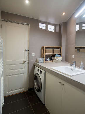 Este apartamento é equipado de uma casa de banho agradável é clara. Esta sala de água dispõe do necessário pelo seu bem estar na sua vida quotidiana : armário, ducheiro separado, sink, radiator secador de toalhas. Os WC são separados da casa de banho e situados em uma peça independente.