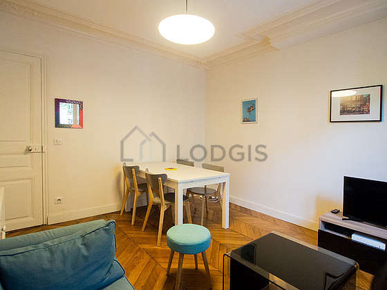 SalaõEste apartamento é composto de um agradável salão com parqué no piso vista sobre rua. Este salão mobiliado et equipado para uma agradável estância : televisaõ, sofá, mesa de jantar, mesinha, prateleira, 1 cadeira(s).