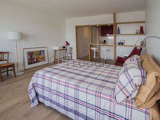 Este apartamento é composto de um soberbo salão com parqué no piso. Este salão calmo mobiliado et equipado para uma agradável estância : lençois, colchas, 1 poltrona(s), secretária, prateleira, 1 cadeira(s), bar, mesinha de cabeceira1 cama.