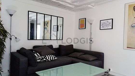 SalaõEste apartamento é composto de um soberbo salão com parqué no piso é janelas. Este salão very quiet mobiliado et equipado para uma agradável estância : sofá, 1 poltrona(s), mesa de jantar, mesinha, floor lamp, mirror.