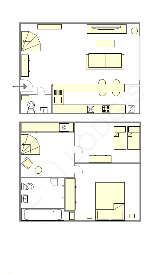 Com parqué no piso é janelas este quarto esplêndido oferece o equipamento necessário para descansar durante sua estância : roupeiro, prateleira, armário, mesinha de cabeceira1 cama.