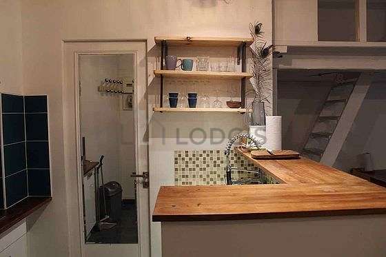 Graças a sua altura de teto, um bonita mezanino foi possível de ser instalado em este apartamento , oferecendo-lhe uma verdadeira peça suplementar equipada de lençois, colchas.