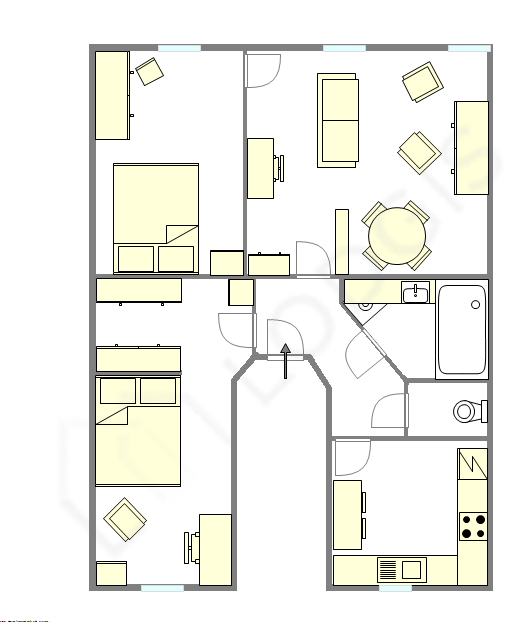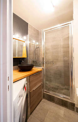 Este apartamento é equipado de uma casa de banho agradável. Esta sala de água dispõe do necessário pelo seu bem estar na sua vida quotidiana : ducheiro separado, secador, sink, radiator secador de toalhas. Os WC são separados da casa de banho e situados em uma peça independente.
