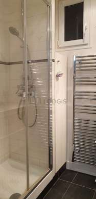 Este apartamento é equipado de uma casa de banho magnífico with janelas. Esta sala de água dispõe do necessário pelo seu bem estar na sua vida quotidiana : prateleira, armário, ducheiro separado, sink, radiator secador de toalhas. Os WC são separados da casa de banho e situados em uma peça independente.