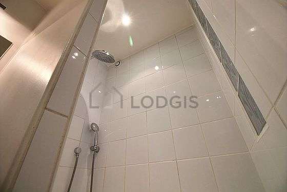 Este apartamento é equipado de uma casa de banho magnífico é muito clara. Esta sala de água dispõe do necessário pelo seu bem estar na sua vida quotidiana : toalhas de banho, prateleira, armário, ducheiro separado, sink. Os WC são integrados na casa de banho.