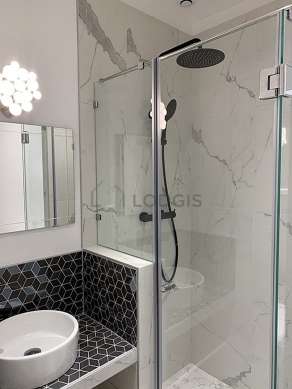 Este apartamento é equipado de uma casa de banho magnífico é clara. Esta sala de água dispõe do necessário pelo seu bem estar na sua vida quotidiana : prateleira, ducheiro separado, sink. Os WC são separados da casa de banho e situados em uma peça independente.