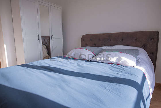 Com parqué no piso este quarto atraente oferece o equipamento necessário para descansar durante sua estância : lençois, colchas, roupeiro, prateleira, guarda-roupa, armário1 cama.