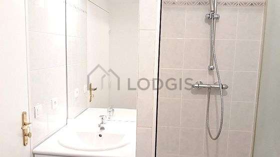 Este apartamento é equipado de uma casa de banho. Esta sala de água dispõe do necessário pelo seu bem estar na sua vida quotidiana : toalhas de banho, prateleira, armário, ducheiro separado, sink, radiator secador de toalhas. Os WC são integrados na casa de banho.