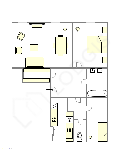 Este apartamento é composto de um bonito salão com parqué no piso é janelas vitros duplos. Este salão very quiet mobiliado et equipado para uma agradável estância : televisaõ, sofá, 1 poltrona(s), mesa de jantar, 1 cadeira(s), entry way table, floor lamp, tv stand, painting, carpet, vase.