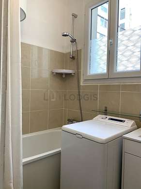 Este apartamento é equipado de uma casa de banho agradável é muito clara with janelas vitros duplos. Esta sala de água dispõe do necessário pelo seu bem estar na sua vida quotidiana : toalhas de banho, prateleira, armário, banheira, secador, sink, bin, radiator secador de toalhas, ventilator. Os WC são separados da casa de banho e situados em uma peça independente.
