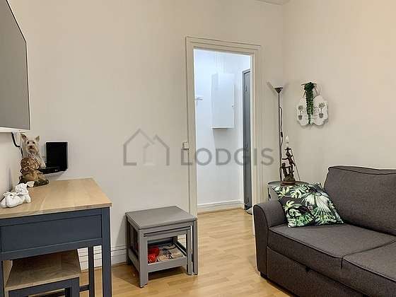 SalaõEste apartamento é composto de um agradável salão com parqué no piso vista sobre pátio. Este salão very quiet mobiliado et equipado para uma agradável estância : televisaõ, lençois, colchas, sofá, mesa de jantar, prateleira, floor lamp, painting1 sofá-cama.