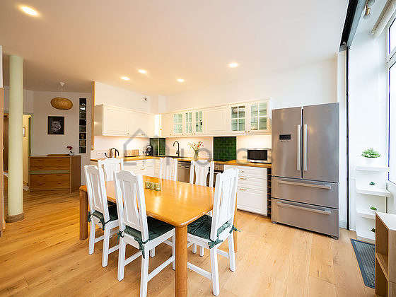 Este apartamento tem uma magnífico cozinha com parqué no piso e todo o equipamento pela sua vida quotidiana : fogaõ, frigorífico, congelador, forno, microondas, torradeira, chaleira, máquina de café, mesa de jantar, prateleira, armário, loiça, 6 cadeira(s).