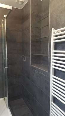 Este apartamento é equipado de uma casa de banho agradável é clara. Esta sala de água dispõe do necessário pelo seu bem estar na sua vida quotidiana : toalhas de banho, roupeiro, prateleira, guarda-roupa, comoda, ducheiro separado, secador, sink. Os WC são separados da casa de banho e situados em uma peça independente.