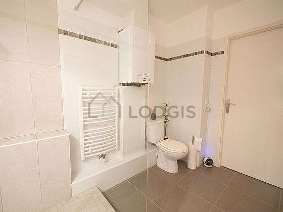 Este apartamento é equipado de uma casa de banho magnífico é muito clara. Esta sala de água dispõe do necessário pelo seu bem estar na sua vida quotidiana : armário, ducheiro separado, secador, sink, towel rack, radiator secador de toalhas, ventilator. Os WC são integrados na casa de banho.