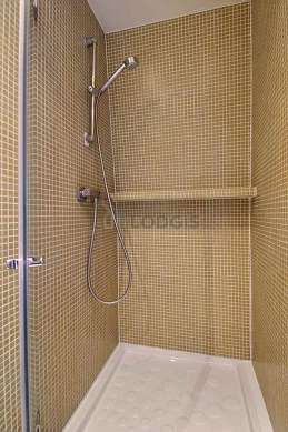 Este apartamento é equipado de uma casa de banho. Esta sala de água dispõe do necessário pelo seu bem estar na sua vida quotidiana : toalhas de banho, ducheiro separado, secador, towel rack. Os WC são integrados na casa de banho.