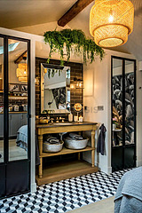 Este apartamento é equipado de uma casa de banho magnífico. Esta sala de água dispõe do necessário pelo seu bem estar na sua vida quotidiana : toalhas de banho, ducheiro separado, secador, sink, sink. Os WC são separados da casa de banho e situados em uma peça independente.