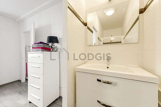 De uma casa de banho magnífico. Esta sala de água dispõe do necessário pelo seu bem estar na sua vida quotidiana : toalhas de banho, ducheiro separado, secador, sink, mirror, towel rack, bin, radiator secador de toalhas, carpet, ventilator. Os WC são separados da casa de banho e situados em uma peça independente.