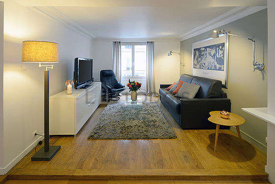 SalaõEste apartamento é composto de um salão com parqué no piso é janelas. Este salão mobiliado et equipado para uma agradável estância : televisaõ, lençois, sofá, 1 poltrona(s), mesa de jantar, mesinha, secretária, biblioteca, loiça, 1 cadeira(s), tv stand1 sofá-cama.