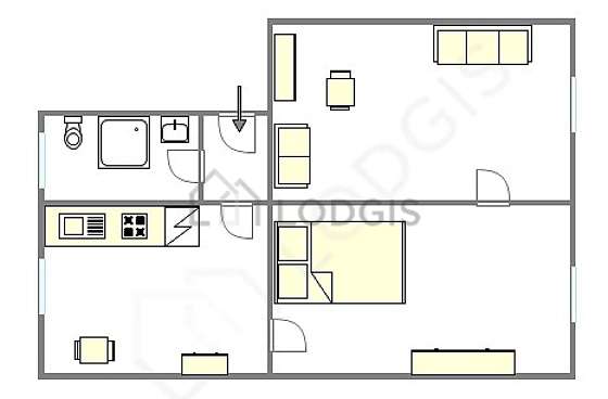 Este apartamento é composto de um magnífico salão com parqué no piso é janelas é vista sobre jardim. Este salão calmo mobiliado et equipado para uma agradável estância : televisaõ, lençois, colchas, sofá, mesa de jantar, secretária, roupeiro, prateleira, guarda-roupa, comoda, armário, loiça, 1 cadeira(s).