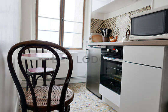 Este apartamento tem uma magnífico cozinha com azuleijo no piso e todo o equipamento pela sua vida quotidiana : fogaõ, frigorífico, forno, microondas, freezer, exaustur, torradeira, chaleira, máquina de café, mesa de jantar, armário, loiça, 1 cadeira(s).