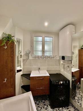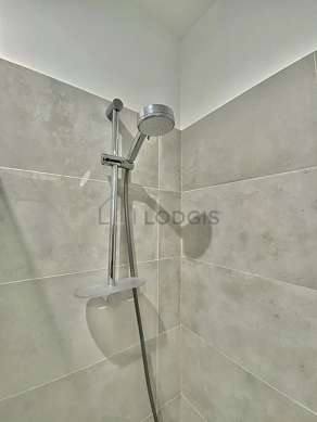 Este apartamento é equipado de uma casa de banho magnífico. Esta sala de água dispõe do necessário pelo seu bem estar na sua vida quotidiana : toalhas de banho, prateleira, guarda-roupa, armário, banheira, secador, sink, towel rack, bin, radiator secador de toalhas. Os WC são separados da casa de banho e situados em uma peça independente.