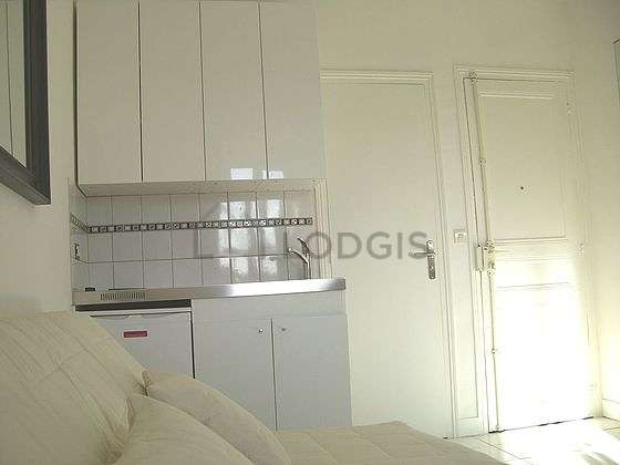 Este apartamento tem uma bonita cozinha com azuleijo no piso e todo o equipamento pela sua vida quotidiana : fogaõ, frigorífico, congelador, micro-ondas combinado, torradeira, armário, loiça.