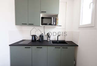 Este apartamento tem uma magnífico cozinha com azuleijo no piso e todo o equipamento pela sua vida quotidiana : fogaõ, frigorífico, microondas, freezer, exaustur, torradeira, chaleira, máquina de café, mesa de jantar, armário, loiça, 1 cadeira(s).