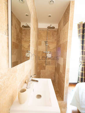 Este apartamento é equipado de uma casa de banho magnífico é muito clara. Esta sala de água dispõe do necessário pelo seu bem estar na sua vida quotidiana : armário, ducheiro separado, secador, sink. Os WC são separados da casa de banho e situados em uma peça independente.