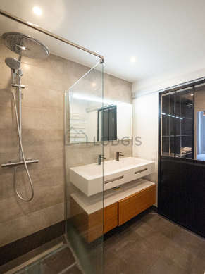 Este apartamento é equipado de uma casa de banho agradável é clara with janelas. Esta sala de água dispõe do necessário pelo seu bem estar na sua vida quotidiana : armário, ducheiro separado, secador, sink. Os WC são separados da casa de banho e situados em uma peça independente.