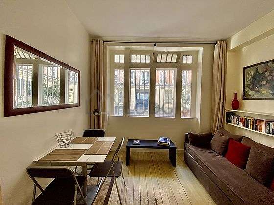 SalaõEste apartamento é composto de um soberbo salão com parqué no piso é janelas. Este salão very quiet mobiliado et equipado para uma agradável estância : sofá, mesa de jantar, 1 cadeira(s).