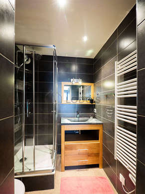 Este apartamento é equipado de uma casa de banho. Esta sala de água dispõe do necessário pelo seu bem estar na sua vida quotidiana : armário, ducheiro separado, sink, radiator secador de toalhas. Os WC são integrados na casa de banho.